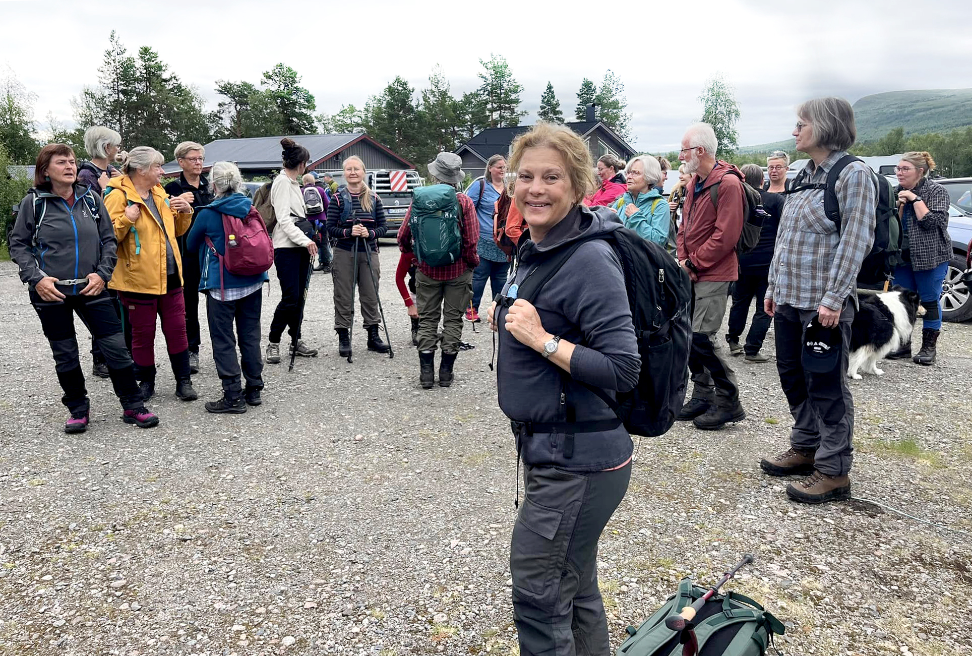 Startpunkt Kungsleden i Jäckvik. Lotta Byqvist är en van vandrare och guide i fjällmiljö. Tempot är normalt. Men om du väljer att vända efter ett tag – så går det förstås alldeles utmärkt. Foto Maria Söderberg 2024. (OBS klicka på bilden om motivet inte synd).
