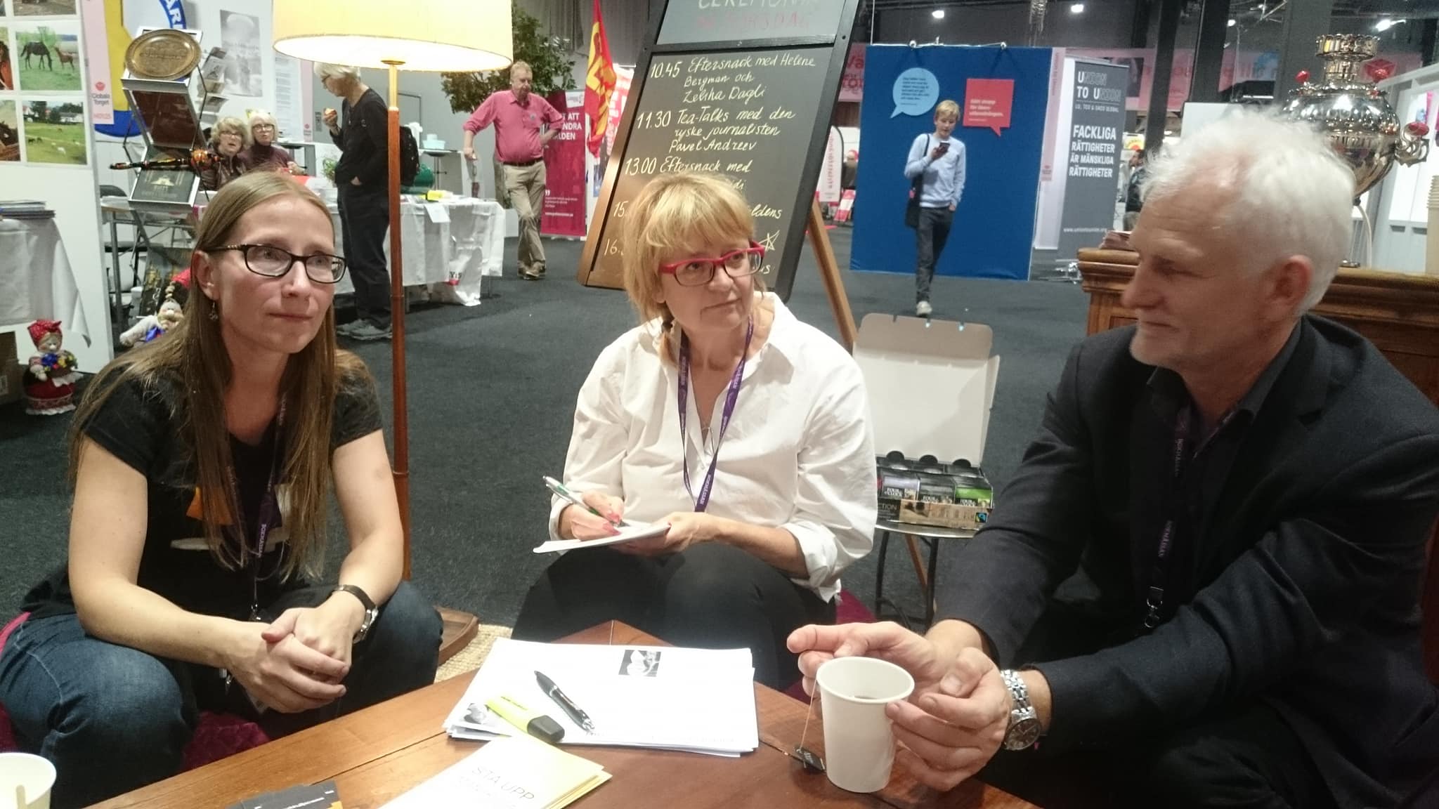 Bokmässan i Göteborg september 2018. Paulina Kluge, Östgruppen och Maria Söderberg i möte med Ales Bjaljatski. Foto Östgruppen
