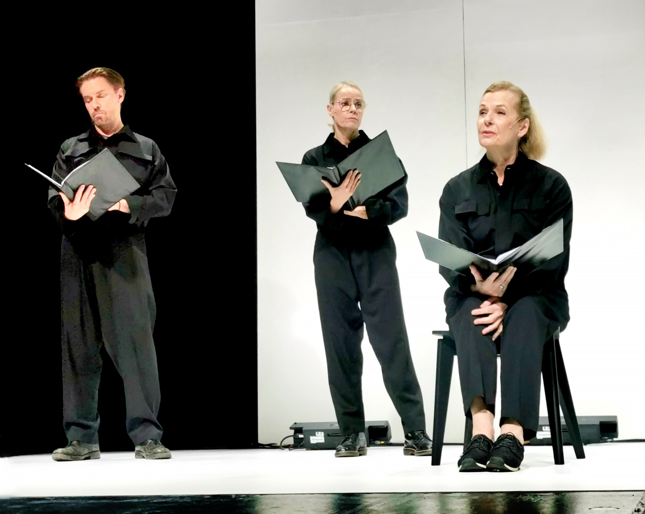 21 april 2023 Dramaten.Doc. ”Scener från fängelset. Det var fyrtio starka minuter igårkväll som spelades upp inför en andlös publik. Den ständigt närvarande frågan var vem som är fri? Fången eller fångvaktaren? Självklart beror allt på utgångspunkten och den som är inlåst är förstås i fysisk mening ofri. Föreställningen är en scenisk bearbetning som baseras på Ales Bjaljatskis egen berättelse och text ur Maksim Znaks bok Zekamerone. Båda har dömts till mycket långa straff i Belarus. Det är vidrigt, orättfärdigt. Men hur lever man ett liv i förtryck? Hur mycket är man beredd att offra och riskera innan man plockas in för tortyr, tvångsarbete och ett långt fängelsestraff? Efter många resor i landet med möten och samtal är det Lukasjenkas mantra som smetar sig fast – stabilitet. Blicken hos många blir fäst på en punkt bortom sin egen generation, det är den – de unga – som ska få uppleva något bättre i en friare värld. Det var omöjligt tänka sig i slutet av 1990-talet att det skulle gå så här illa. Men många pratade då ofta om att det skulle bli bättre, det måste det bli. I pjäsen BJALJATSKI, BE OM NÅD! finns inte minst alla dessa möjliggörare (fångvaktare) som inordnar sig och gör sitt jobb. Det finns bland dem säkert de som verkligen tror på sin sak, men inte alla. Hur lever man med den känslan? Det är nära till hands att geografiskt tänka på det norska motståndet mot Hitlerockupationen; vem var för, vem var emot? Den moraliska kompassen kunde vara obarmhärtig. I Ales Bjaljatskis Nobelpristal (som lästes upp av hans fru Natallja Pinchuk) https://www.nobelprize.org/…/2022/bialiatski/lecture/ finns följande meningar: ”I recently had a short dialogue. – When will you be released? – they asked me. – I am already free, in my soul, was my reply. My free soul hovers over the dungeon and over the maple leaf outlines of Belarus. I look inside myself, and my ideals have not changed, have not lost their value, have not faded. They are always with me, and I guard them as best I can. They are like cast from gold, immune from rusting.” Så, stor tack! Medverkande skådespelare: Nina Fex, Gunnel Fred, Duncan Green, Siham Shurafa. Regi Dmitri Plax. I översättning av Dmitri Plax, Hanna Sandborgh och Ola Wallin. I samarbete med Svenska PEN och Ersatz förlag. Och när förställningen var slut blev det eftersnack på restaurang om både krig och fred.” (Från Facebook, Maria Söderberg).