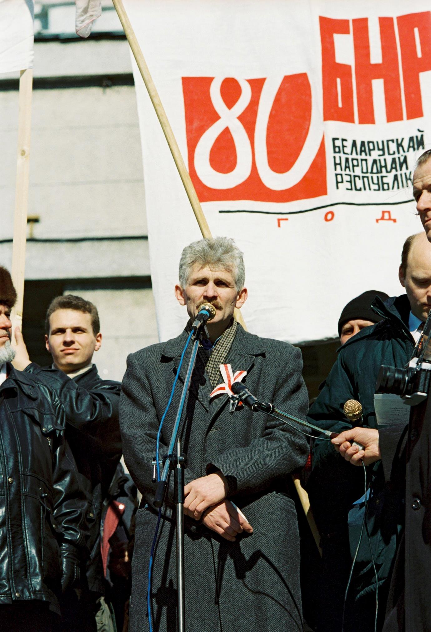 Frihetsdagen i Belarus, en historisk minnesdag med tal av Ales Bjaljatski i Minsk den 28 mars 1998. Foto Maria Söderberg