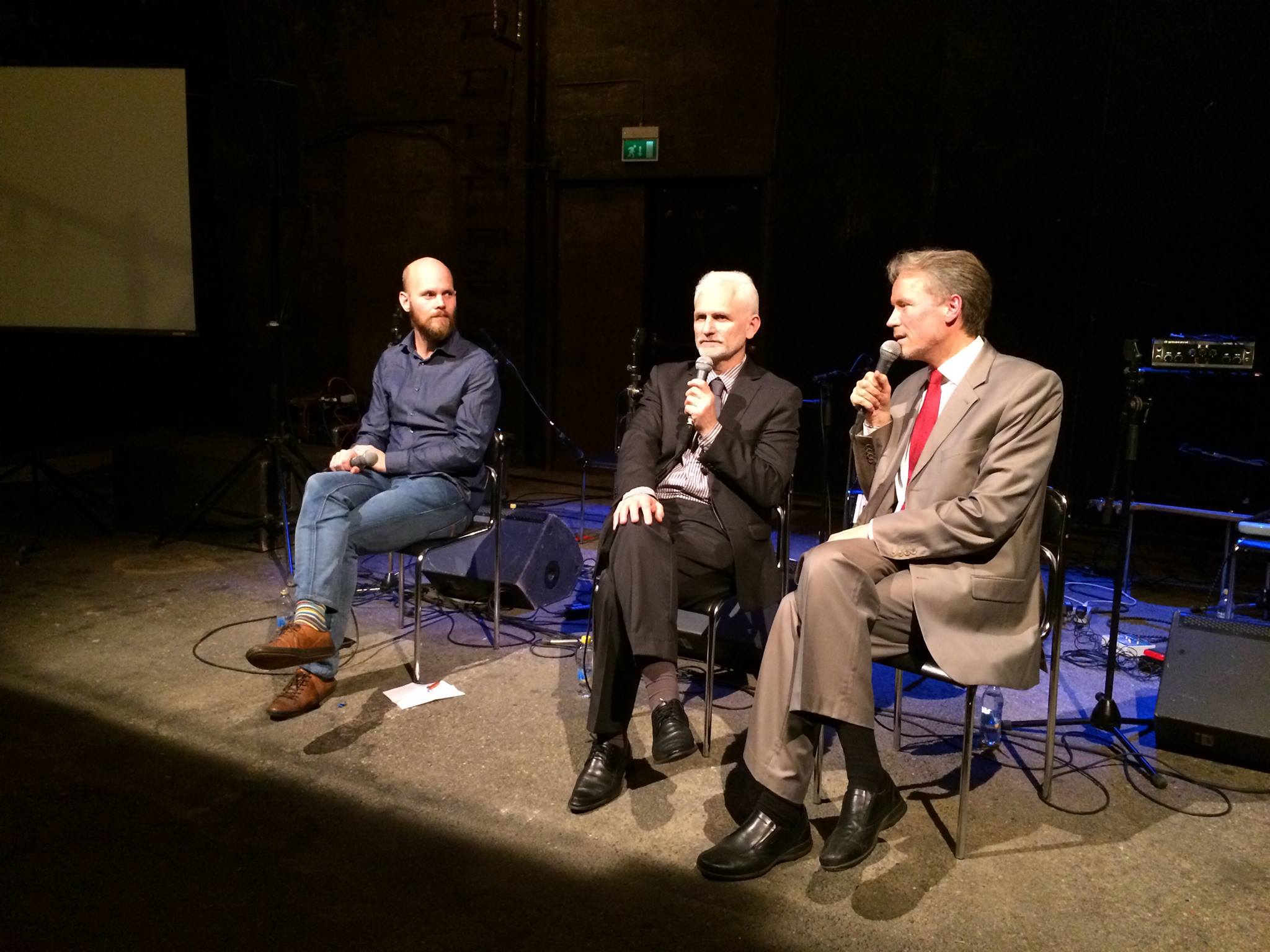Från den 4 november 2014: ”En mycket spännande kväll med Ales Bjaljatski! Östgruppen firar 10-årsjubileum på Orionteatern. Hedersgäst är den framstående belarusiske människorättsförsvararen Ales Bjaljatski som gör sitt första Sverigebesök sedan han i somras släpptes efter nästan tre år i fängelse. Ales berättar väldigt starkt (och underhållande) om sina år i fängelse.— med Stefan Eriksson och Jon Fridholm.” Foto Maria Söderberg